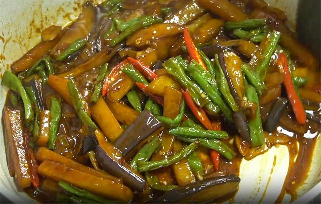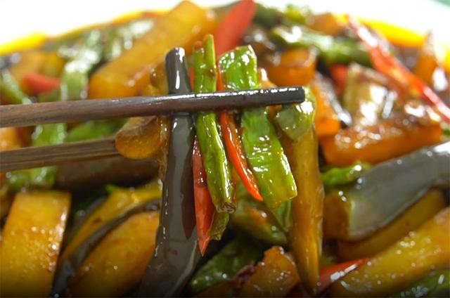 准备食材: 豆角、茄子、土豆、小米辣、大蒜、生抽、素蚝油、老抽、白糖、盐、淀粉、清水、食用油、郫县豆瓣酱 具体做法: