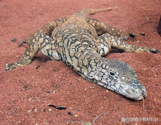 关于萨氏巨蜥的谣传流传甚广,有人传言称它们可以长到5-6公尺,但这完全是毫无根据的无稽之谈。事实上,最长的萨氏巨蜥吉尼斯记录有两个,一个长度为2.8米,另一个长度为2.65米。 4、眼斑巨蜥(20千克) 眼斑巨蜥是澳洲沙漠中的顶级猎食者,主要分布在澳大利亚昆士兰等广泛地区的干燥稀树大草原中。这种巨蜥可以长达2.5米,重达25公斤,平均体长为2米,重约20公斤。尽管身躯较短,它们的体重和粗壮度都超过了圆鼻巨蜥,但相对于科莫多龙或萨氏巨蜥,眼斑巨蜥显得较为细长。