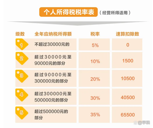 在不考虑他们夫妻二人业主之外的其中一人工资、专项附加扣除、水电费等其他成本费用扣除等情形下,按照经营所得税率表,可以大致计算出他们全年需要缴纳的个税为:142.4*35%-6.55=43.29万。 以上只是基于部分假设情况下,大致计算的一个税费结果,考虑不是每天出摊、其他成本费用扣除等等,实际情况可能与这个计算结果有较大出入。 这对小夫妻靠自己双手拼搏努力是值得大家学习和肯定的,本文的重点不是否定他们的付出,也不是质疑他们是否足额缴纳了相关税费,只是通过这样一个事情,跟大家聊一下摆摊经营的个体户税费缴纳的相关内容,供大家学习和参考。 当然,由于时间仓促和个人能力问题,可能部分计算会有纰漏或误差,欢迎大家指出并多多交流,共同学习进步。 |