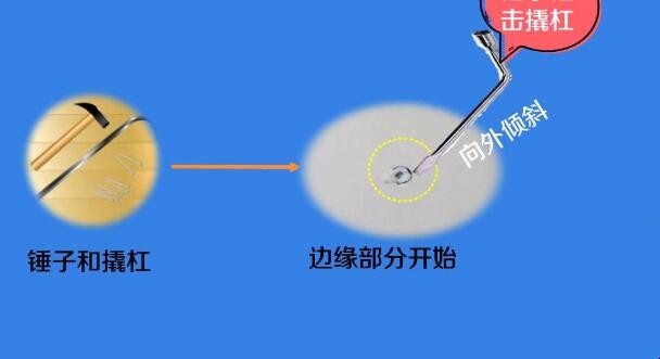 生活中难免会出现这样的小状况,瓷砖砸出了个小坑,虽说不是什么大问题,但是影响地面的美观度,那么瓷砖砸一小坑如何修补呢? 1、用锤子和撬杠从碎裂中心边缘开始,撬杠适当向外倾斜立在砖面,用锤子锤击撬杠。