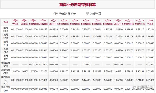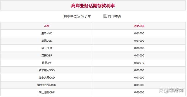 同样,单位存款利率的调整只涉及人民币存款利率,单位外币存款利率暂时没有新的调整。 3、离岸业务存款利率www.ws46.com 招商银行涉及的离岸业务币种包括港币、美元、欧元、英镑、日元、新加坡元、加拿大元、澳大利亚元、瑞士法郎,新的离岸业务存款利率从8月1日开始执行。 (1)离岸业务活期存款利率 港币利率0.01%;美元利率0.01%;英镑利率0.01%;日元0.0001%;新加坡元0.01%;加拿大元0.01%;澳大利亚元0.01%。