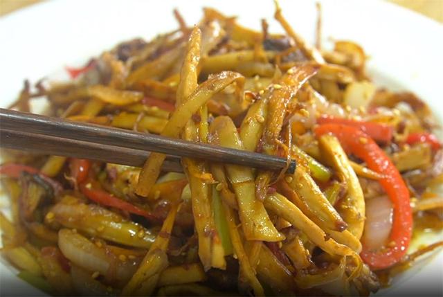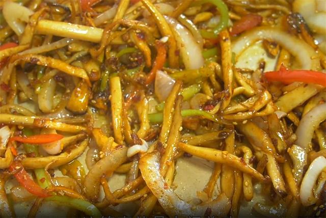 1.自从学会这道孜然杏鲍菇,老公再也不用出去撸串了,香辣入味,比吃肉还香。杏鲍菇洗干净后撕成S型的长条,具体什么是S型自己掌控。