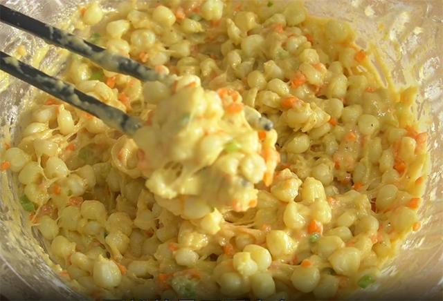 准备食材: 玉米、葱花、胡萝卜、清水、盐、五香粉、胡椒粉、玉米淀粉、普通面粉、食用油、白芝麻 具体做法: