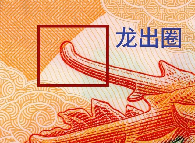 首先是“龙出圈”版,与正常的龙钞相比,这种版别的龙角,顶出了圈外。与此类似的,还有龙爪出圈。