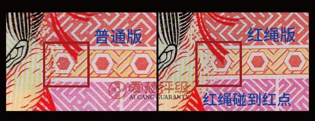此外,还有红绳版。 它的特征也很明显,那就是红绳碰到了红点。 拥有这些特征的,都是相对要少见一些的版别,藏友们也可以去找一找。 新的热门靓号与各种新版别不同的是,多种热门靓号,表现极为火热。(www.wS46.com) 在龙钞中,最为亮眼的就是倒置号和圆圆号了。同时,和它们相关度很高的全偶号和朦胧号,也十分火热!