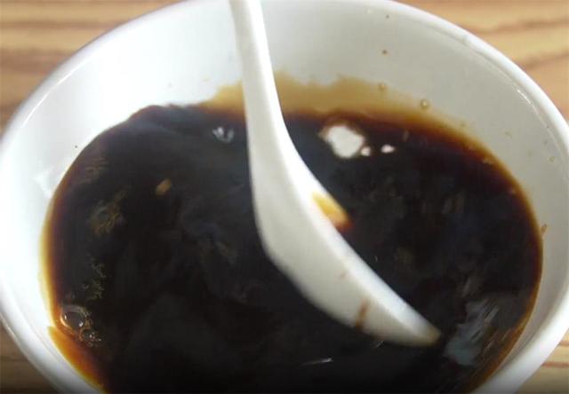 3.再来调个料汁,生抽2勺,适量的素蚝油,半勺老抽上色,一点白糖提鲜,适量的盐,半勺淀粉,加入一碗清水搅拌均匀备用。