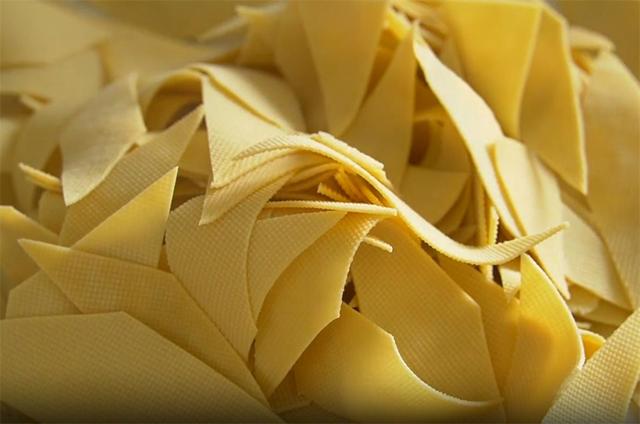 1.秋天经常吃饭没胃口,今天分享一锅我家上桌率最高的菜,我认为这是豆腐皮最好吃的做法,没有之一,不信你试试。准备四张豆腐皮,对半切开,分成6份,斜刀切成菱形片,放入盘里备用。