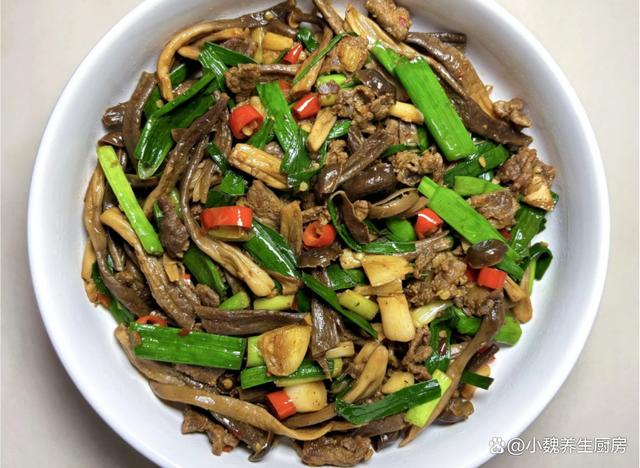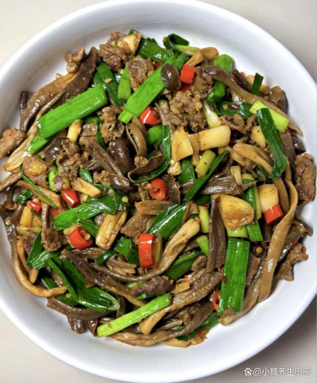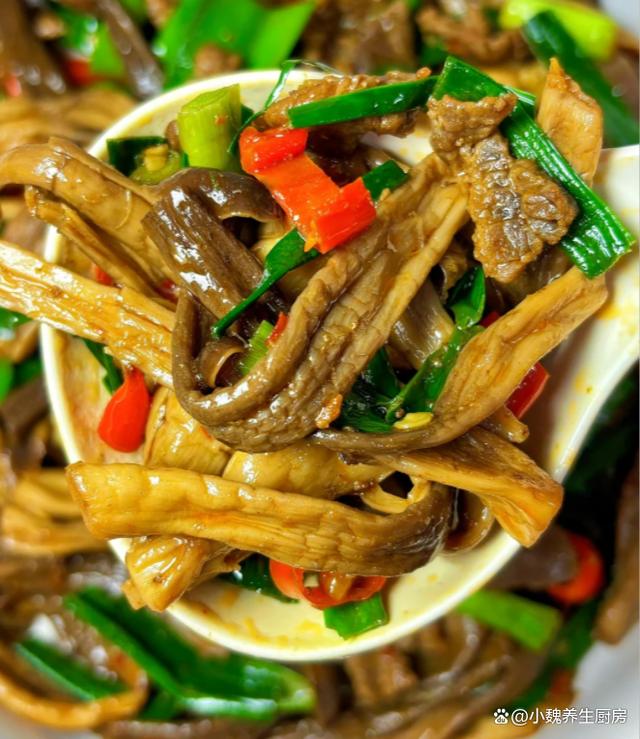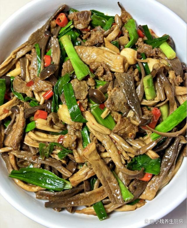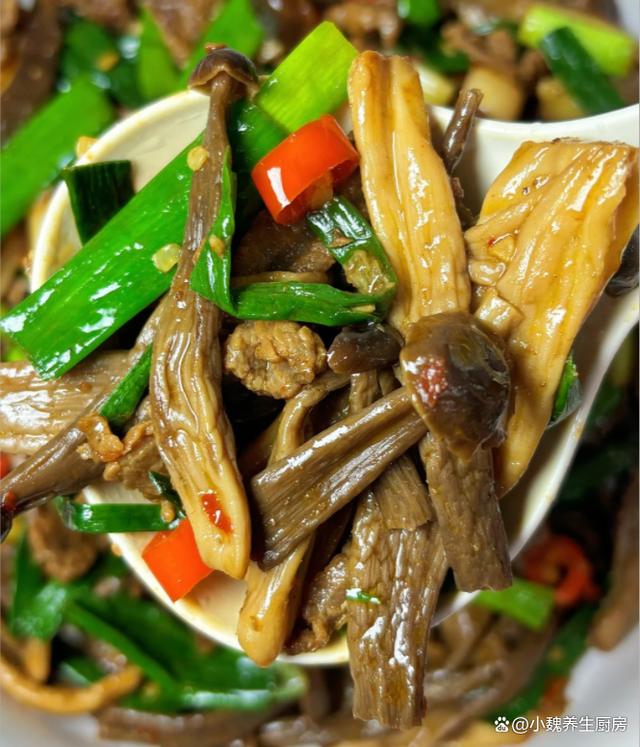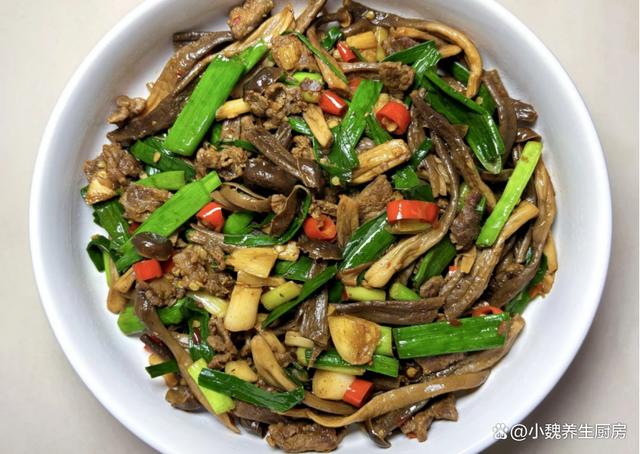 第六步:加上一些姜蒜末和小米辣,加上半勺豆瓣酱,放入泡好的鹿茸菇,加上少许食盐和白糖。 (www.ws46.Com) 第七步:加上少许生抽和蚝油,加上半碗清水,焖煮一小会儿,放入一些大蒜苗,用过程迅速翻炒均匀,装盘出锅,这道鹿茸菇大蒜苗炒牛肉就制作完成了。 鹿茸菇大蒜苗炒牛肉的制作小贴士:首先,牛肉的选材至关重要。建议选择带有一定肥瘦相间的牛肉,如牛里脊或牛腩,这样的肉质在烹饪过程中既能保持肉质的鲜嫩,又能增添菜肴的香气。在切片时,尽量将牛肉切得薄而均匀,这样有利于牛肉的快速熟透,锁住肉汁。 其次,鹿茸菇的预处理也不可忽视。鹿茸菇需要提前泡发并清洗干净,去除杂质和泥沙。在炒制前,可以用厨房纸巾吸干鹿茸菇表面的水分,避免炒制时出水过多,影响菜肴的口感。大蒜苗的加入则为这道菜肴增添了一抹清新的绿色。在炒制时,可以先将大蒜苗的白色部分炒至断生,再加入绿色叶子部分,以保持其鲜嫩的口感和翠绿的色泽。 调味方面,可以根据个人口味适量添加生抽、老抽、料酒等调味料,以突出牛肉和鹿茸菇的鲜美。同时,在炒制过程中,可以沿锅边淋入少许清水,使调味料更好地渗透到食材内部。最后,火候的掌握也是关键。在炒制过程中,要保持中大火力,快速翻炒,以确保食材受热均匀,锁住营养和口感。当牛肉熟透、鹿茸菇和大蒜苗断生时,即可出锅装盘,享受这道美味佳肴了 鹿茸菇大蒜苗炒牛肉是一道非常美味的家常菜肴,选用鹿茸菇,大蒜苗和牛肉,简单炒一锅,色香味俱全,香气扑鼻,解馋开胃,吃起来很有胃口,我们一家人都爱吃。 各位网友们,你们是否吃过这道鹿茸菇大蒜苗炒牛肉呢?(文中的配图都出自网络)