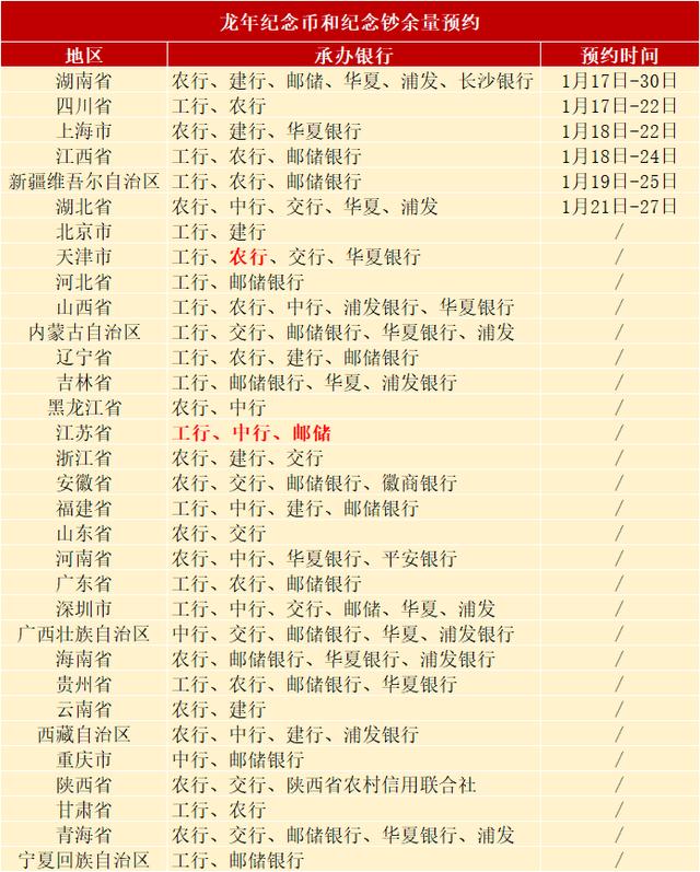 在当下,藏友们比较关注的,有两件事。 第一是龙年币钞到底还能怎么预约入手? 第二是火热的龙年币钞真的有人要吗?该如何出手? 百科网就简单和大家讲一讲。 龙年币钞第二次预约中在1月17日开始,龙年币钞就陆续开始预约了,全国各地暂时都是直接线下预约兑换! 值得一提的是,本次预约额度很少,龙币只有634万枚了,龙钞更加夸张,只剩下了255万张!