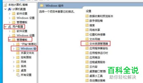 2. 第二步,来到下图所示的本地组策略编辑器页面后,打开用户配置文件,接着打开管理模板中的Windows组件文件夹,然后打开文件资源管理器文件夹。