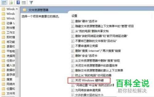 3. 第三步,在下图所示的文件资源管理器文件夹页面中,双击红框中的关闭Windows键热键选项。