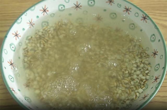 2.准备200克薏米,先淘洗干净,同样加入开水,把薏米焖十分钟。