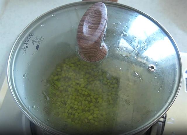 1.生活中多吃些绿豆,有清热解暑的功效,而且特别解渴。今天给大家分享一道十分钟就能煮熟的绿豆汤,香甜软糯,颜色翠绿,而且个个开花,顺便分享个不变色的小窍门,准备300克毛绿豆,加入清水,把它们淘洗干净,烧一壶开水,倒在绿豆里面,盖上盖子焖上十分钟。