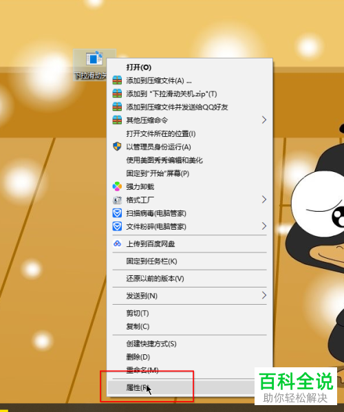 7. 然后我们回到桌面找到我们刚才新建的快捷方式,鼠标右击打开菜单然后在菜单最底下找到属性选项点击打开