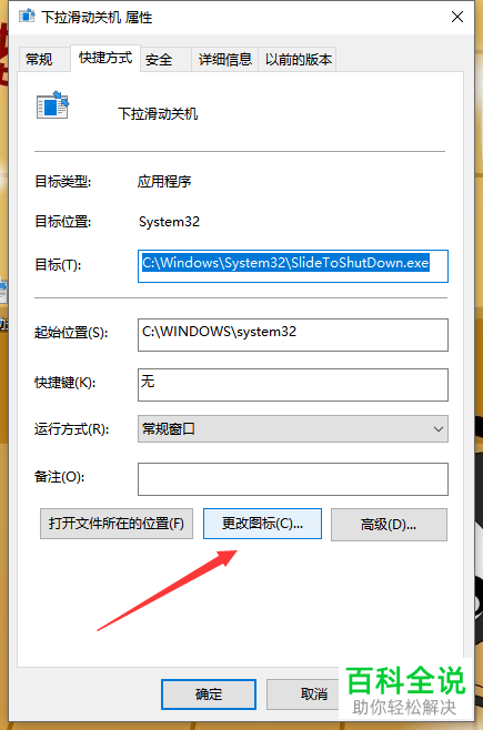 8. 接下来我们就会进入到属性界面,我们找到界面顶部的快捷方式选项然后在界面下方找到更换图标选项,点击打开