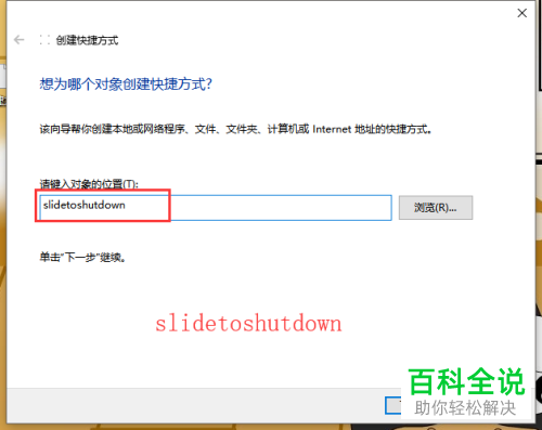 4. 我们在这个窗口的输入栏中输入slidetoshdown