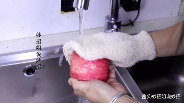 妙用四:清洗瓜果蔬菜。 平常我们清洗瓜果蔬菜时,也可以利用上搓澡巾,它就能帮助将瓜果蔬菜清洗得更加干净。比如土豆、萝卜等根茎类蔬菜,表面往往带有泥土,用手很难清洗干净。而搓澡巾的粗糙表面可以轻松去除泥土,只需轻轻擦拭,泥土就会掉落。再比如苹果、毛桃等水果,上面会有蜡质,农药残留等。这个时候,我们只要将搓澡巾套在手上,然后用其粗糙面擦拭水果,这样不仅能去除蜡质,还能减少农药残留,使水果清洁的更加干净,让我们吃得更加放心。