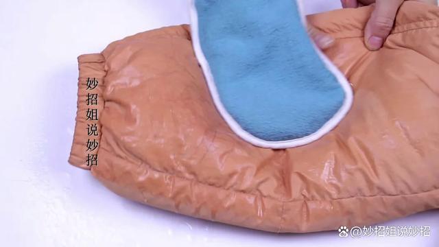 接着,再用搓澡巾粗糙的一面去擦拭就可以了。洗洁精具有很好的清洁作用,而白醋可以软化污渍,这样就能帮助去除衣服上的脏污了。而搓澡巾的粗糙表面能够增加摩擦力,使得污渍更容易被去除。只需简单几下,就能让羽绒服局部恢复干净了。最后,我们再用干净的抹布擦几下,把残留的清洁液擦掉,我们的羽绒服也就清洁好了。