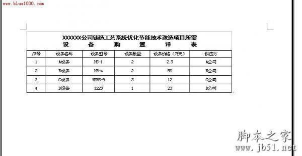 8.如果需要将此表插入到word文档以便其他使用,也很简单。先将刚做好的Excel表格保存为一个文件名《设备表》到桌面上。将此页的页面设置成横 向,否则表格会显示不全的。在Word文档中需要插入的地方,点击一下鼠标,然后选择上面“插入”---“对象”——“由文件创建”,然后找到刚刚保存的 《设备表》,插入,确定,然后就插入到Word中了。效果图如下: