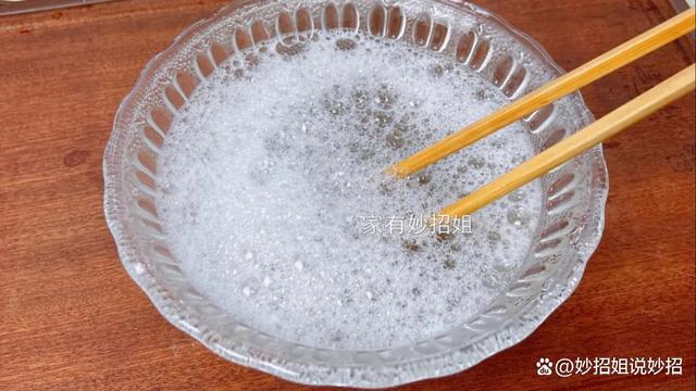 接下来,我们再往里面倒入一些开水,并搅拌搅拌,使里面的纯碱、洗洁精和白醋都能充分溶解在水中。搅拌好,这样一个具有超强清洁作用的溶液就调制好了,我们就可以用它来清洁油烟机了。