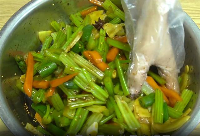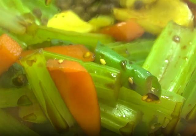 准备食材: 芹菜、胡萝卜、线椒、盐、食用油、生抽、味极鲜、陈醋、八角、花椒、冰糖、大蒜、生姜、熟芝麻、高度白酒 具体做法: