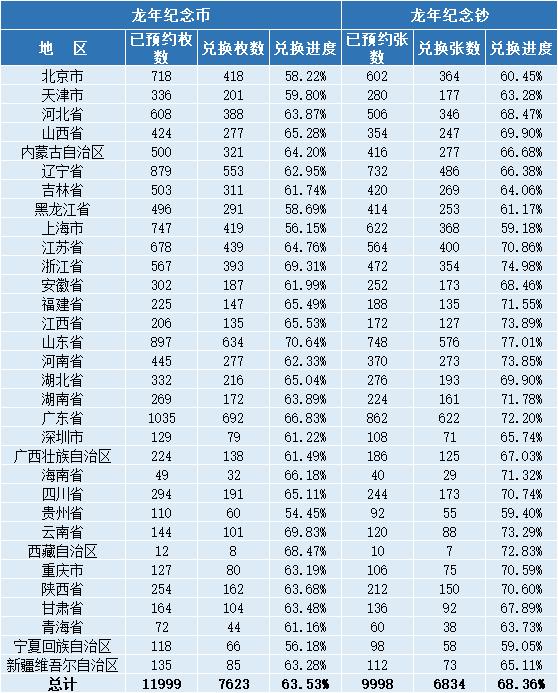 从央妈公布前三天的兑换数据来看,龙币和龙钞的兑换进度都已经过半了,具体情况如何,百科网也给大家整理了一份表格。
