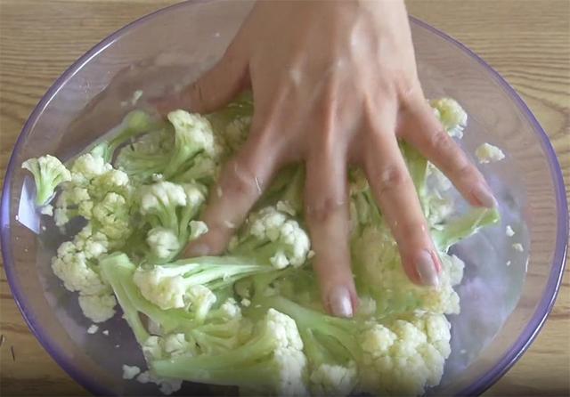 2.饭店做的话一般都是简单清洗一下,自己在家里做,可以加一勺盐,把花菜好好清洗干净,然后捞出来后控水备用。