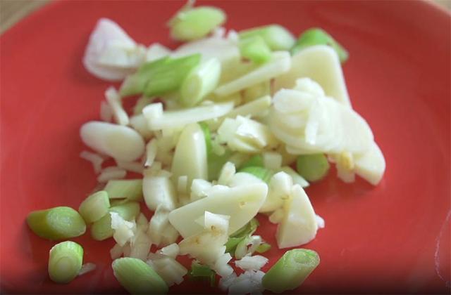 3.准备大葱切成段,生姜切成丝,适量的大蒜切成片。