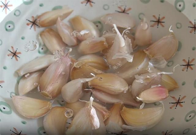 10.最后一种方法不仅是我家常用的,也是很多饭店餐厅在用的方法,先把大蒜一瓣瓣的掰下来,放到一个大点的碗里,加入适量的清水,把大蒜浸泡十分钟,大蒜经过浸泡以后,蒜皮就会变软。