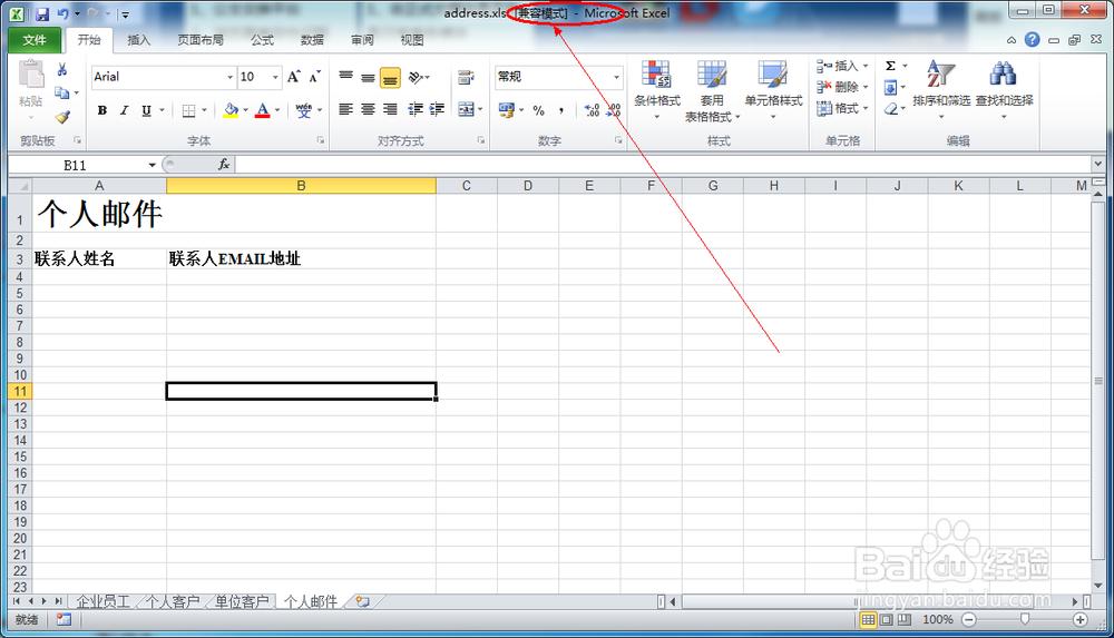 打开一个Excel2003的文件,Excel2003文件格式是“文件名.xls”这样的。在Excel2010中打开Excel2003文件默认是以兼容模式打开,文件打开后在文件名称上会带有“[兼容模式]”4个字。