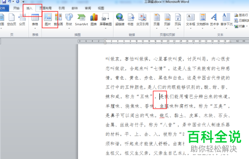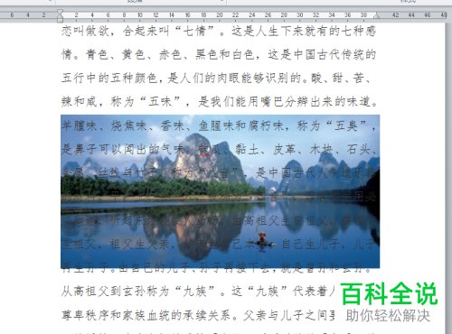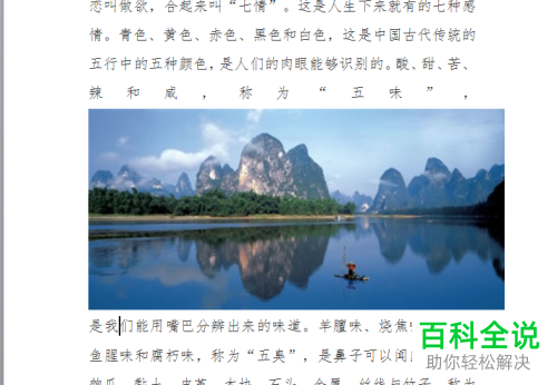 4. 第四步,成功插入图片后,如下图所示,图片并没有处于位置的下方,而是将文字隔开了。