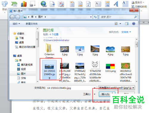 3.第三步,在打开的插入图片窗口中,选择要插入的图片,然后点击下方的插入按钮。
