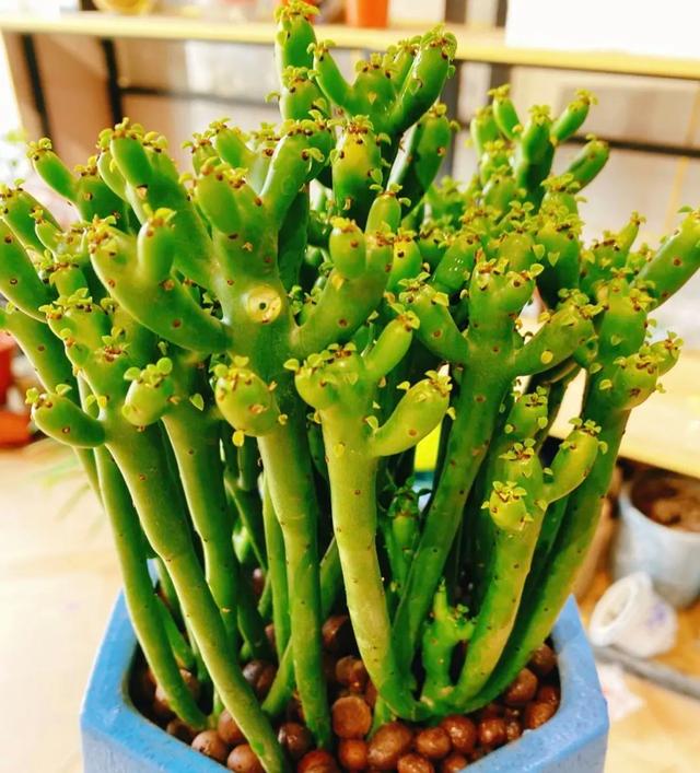 一品红,花色有红有粉也有黄,最常见的便是红色,喜气洋洋,红红火火,热情奔放,十分应景,是很重要的年宵花。有优点也有缺点,缺点便是它的毒素,家有小朋友,一定要慎养。 光棍树