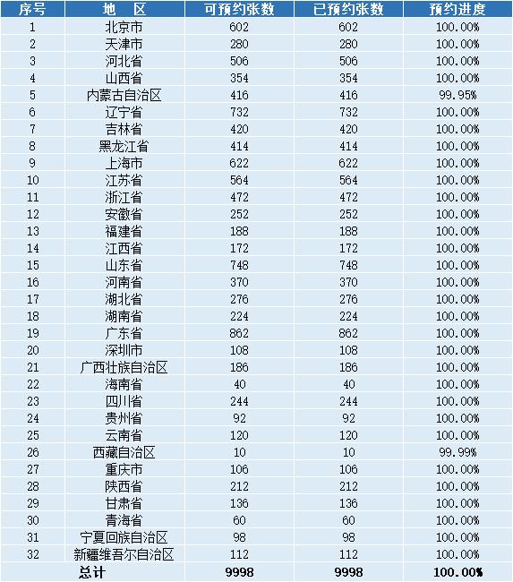 可以看到,几乎所有地区的预约率都达到100%,十分罕见。 而龙钞的热度更为惊人,预约进度同样是百分百!
