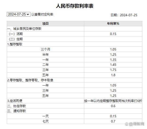 银行存款是一种很受欢迎的理财方式,存款利率也直接关系到投资者们存款的收益。近日四大银行存款利率又一次下调,工商银行也不例外。对于工商银行存款最新利率以及存款利息,希财君下面就为大家详细介绍一下。 2024年7月工商银行最新存款利率: 截止2024年7月25日,根据工商银行官方公布的存款利率表,以下是工商银行最新的存款挂牌利率,供各位投资者们参考: 1、活期存款年利率为0.15%。 2、整存整取的定期存款年利率为1.05%~1.8%,其中三个月期为1.05%,六个月期为1.25%,一年期为1.35%,二年期为1.45%,三年期为1.75%,五年期为1.8%。 3、零存整取、整存零取、存本取息的定期存款年利率为1.05%~1.25%,其中一年期为1.05%,三年期为1.25%,五年期为1.8%。 4、定活两便存款年利率为按一年以内定期整存整取同档次利率打六折。 5、协定存款年利率为0.6%。 6、通知存款年利率为0.15%~0.7%,其中一天通知存款年利率为0.15%,七天通知存款年利率为0.7%。 附工商银行存款利率查询网址:https://www.csai.cn/bankrate/3h44hsde.html 存10万利息多少: 存10万利息多少并没有一个固定的答案,存款的利息跟选择的存款方式以及存款期限有关,投资者们可以参考以下几个例子来计算。 假设投资者将10万存入工商银行一年期整存整取的定期存款,那么可以获得的利息=100000×1.35%×1=1350元。 假设投资者将10万存入工商银行三年期整存零取的定期存款,那么可以获得的利息=100000×1.25%×3=3750元。 假设投资者将10万存入工商银行一年期协定存款,那么可以获得的利息=100000×0.6%×1=600元。 需要注意的是,投资者在进行存款时除了基本的存款利息以外,银行还可能提供一些存款的优惠活动,如赠送礼品或积分兑换等。在存款利率不断下降的情况下,投资者们还可以考虑根据自身风险承受能力购买一些银行理财等产品,通过分散投资获取更高收益。 以上就是关于“四大行存款利率下调:工商银行存10万利息多少?”的知识。如果想了解更多关于理财知识的内容,可以点击下面的课程学习哦。 |