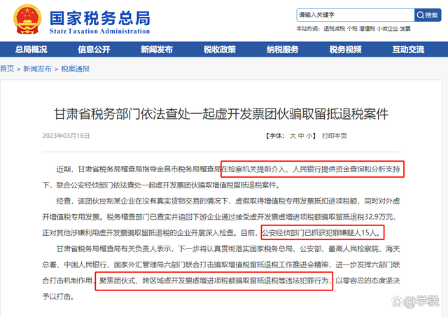 新一轮税务严查来了!国家税务总局最新公布了6起税务违法案件,分别涉及虚开发票、骗取留抵退税、骗取出口退税、未依法办理个税汇算、通过隐匿收入进行偷税等涉税违法行为。具体情况,我们一起来看看吧! 1、浙江台州税务:临海市某加油站偷税被查! 台州税务的稽查部门通过税收大数据分析线索,对临海市某加油站进行了税务检查。经查,该加油站通过隐匿收入、虚假申报等违法手段进行偷税,偷税金额高达500多万。 税务部门依据相关规定,对该加油站相关偷税进行进行了处罚:追缴税款、加收滞纳金、罚款合计1013.06万元。同时,税务部门还透露:下一步坚决依法严查严处各种偷逃税行为。 2、天津税务:3家加油站虚开发票被查,相关责任人被判刑! 天津税务依托税收大数据分析线索,联合公安经侦部门,查处了一起加油站虚开增值税专票的案件。经查,王某等4人操控3家加油站大肆虚开增值税专用发票,数量高达3156份。 最终,王某等4名犯罪分子被依法严惩,分别因虚开增值税专用发票罪被判处3年6个月至10年不等有期徒刑,并处罚金合计25万。同时,税务局明确表示:下一步将坚决严查严处各种虚开发票行为。 3、广东东莞税务:刘某某未依法办理个税综合所得汇算被查 东莞税务部门在对个税综合所得汇算事后抽查时发现,某公司员工刘某某未依法办理2020、2021两个年的汇算,于是对其进行了立案检查。 经查,2020年度、2021年度刘某某均未在规定的时间内办理汇算清缴,少交个税,且经过税务机关提醒,仍不进行办理。最终,被税务局对其追缴税款、加收滞纳金、罚款合计9.99万元。 时下正值2022年度个税综合所得汇算清缴的办理期限内,在这里提醒大家注意:不要存在应办理而不办理汇算、虚假申报、隐匿收入等违法行为,如果遇到税务局的提醒督促,记得要积极配合整改。 4、安徽税务:联合多部门,查处一起骗取出口退税案 安徽某股份有限公司,采取虚增出口货物价格等手段骗取出口退税被查,同时该企业还存在对外虚开增值税专用发票的违法行为。 安徽淮南税务对该公司追缴了骗取出口退税3486.10万元,同时案件被移送司法机关办理。最终,潘某武等6名犯罪嫌疑人,因骗取出口退税最、虚开增值税专用发票罪,被分别判处3年至17年不等的有期徒刑,并处罚金合计8010万,安徽某股份有限公司则因单位犯罪,被判处罚金3500万。 税务部门相关负责人表示,将继续以零容忍态度对虚开发票骗取出口退税等违法行为进行严查严打。 5、甘肃税务:虚开发票团伙骗取留抵退税被查,已有15人被抓 6、湖北税务:警税联合破获一起虚开增值税专用发票案,11人被判刑 虚开发票团伙通过控制的多家商贸企业,不仅非法取得专票抵扣进项,在没有真实业务的情况下,还大肆对外进行虚开增值税专用发票14800份。 最终,该团伙主犯被判无期 没收个人全部财产,其余10人,被判处2-15年不等有期徒刑,并处罚金合计152万。 现在是6部门常态化打击虚开骗税,尤其对于团伙式、跨区域虚开发票的违法行为,更是严查严打。 以上6个案例表明:对于涉税违法行为的新一轮严查已经到来。作为企业和个人而言,务必做好税务合规事宜,尤其曝光案例中反映的虚开发票、偷逃税、骗取留留抵退税、骗取出口退税、不按规定进行个税汇算等5种行为,一定不能再有了。 另外,从以上通报的案例细节中,我们还给大家总结了几点提醒,供大家参考: 1、现在很多案件已经是通过税收大数据分析线索来发现的了,这在一定程度上意味着虽然金税四期没有正式上线,但是一些技术已经开始在税务稽查上有了比较深入的应用。 以数治税虽然听起来还很远,但是说不定哪一天就已经来到我们身边。而以数治税的背景下,很多原来人工查不到的地方,大数据是可以查到的,大家需要提前做好合规准备,防范涉税风险。 2、在这个时间节点,税务总局公开曝光一批税务违法案例,除了震慑违法分子外,还有一定的指向性的,一方面给企业和个人展示的2023年偷逃税必严查的决定,另一方面,也在一定程度上,代表了2023年可能的重点税务稽查方向。 所以,建议企业的老板和财务人员,好好的研究税务总局公布的一些税案,从这些税案中总结一些经验教训,避免前人踩过的坑,自己再踩一次。 3、从这次曝光的税案中,大家可能比较直观地感受到虚开发票的风险真的很高,甚至有个主犯直接被判了无期。无论是企业老板,还是财务人员,乃至普通人,都不要碰虚开的这个红线,因为弄不好真的会坐牢的。 4、案例中有一个是个税综合所得汇算相关的,顺便提醒大家一句:个税汇算过程中会有审核,结束后会有抽查。大家除了尽量保证在申报的内容合法合规之外,还要注意一旦接到税务局的提醒督促,一定要积极配合。 最后,以上内容仅供参考和学习所用,不作为实际操作依据。更多企业涉税风险及规避内容,可以看下专栏: |