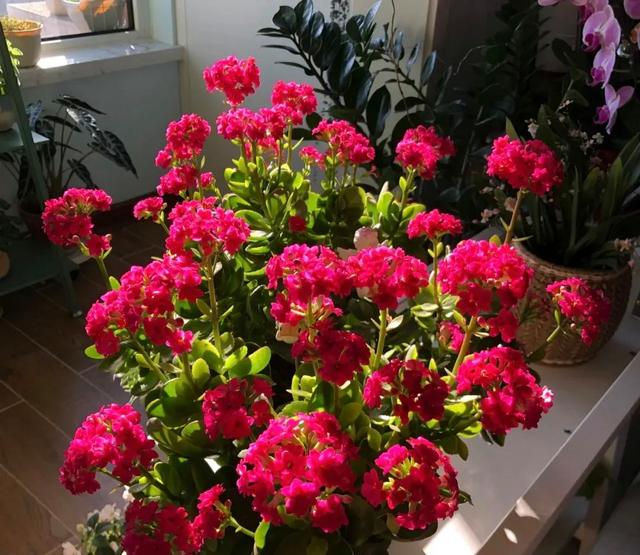 长寿花,这名字就喜庆,寓意着长长久久、福寿安康。它的花朵小巧玲珑,颜色丰富多彩,有红的、黄的、粉的、白的,简直就像个小花园一样。而且啊,长寿花的花期还特别长,能从秋天一直开到第二年春天,简直就是“开花机器”啊! 养长寿花,其实特别简单。它喜欢阳光,但也不能暴晒,放在室内光线明亮的地方就行。 浇水呢,要遵循“见干见湿”的原则,就是看到盆土干了再浇,浇的时候要浇透。还有啊,长寿花比较怕冷,冬天的时候要注意保暖,别让它冻着了。 二、红掌