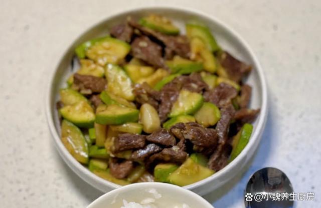 已经到了10月份的最后一周,秋季已经到了最后时刻,距离冬天越来越近,秋天是非常阴凉的时候,早晚非常寒冷,中午非常暖和,空气会非常干燥,口干舌燥,胃口会很差,冬天需要许多营养,才能维持生活的所需营养。今天推荐一道适合秋天享用的菜肴——西葫芦炒牛肉,荤素搭配,营养美味,百吃不腻。入秋后,这菜使劲吃!平常要多吃这菜,营养美味,别舍不得花钱。  【西葫芦炒牛肉的详细步骤】 食材清单:选购一根新鲜西葫芦(西葫芦是一种高维生素的蔬菜,很多地方又叫角瓜,口感非常清甜脆口,低脂又健康,水分也非常足,一般搭配各种肉类一起吃),少许生粉或淀粉,食用油少许,生抽和蚝油少许,鸡精和胡椒粉少许,食盐若干,冷水少许,新鲜牛肉里脊300克左右(牛肉里脊是牛肉的部位之一,肉质最为鲜嫩,色泽非常红润,适合用来炒肉丝或肉片,吃起来特别有食欲),几片老姜,若干个大蒜坨,蚝油半勺,其他调味品。 正确制作顺序:第一步:提前准备好西葫芦,牛肉里脊和配菜,先把大蒜坨去掉外皮,洗净切成蒜片,几片生姜切成细末。 第二步:西葫芦的外皮有残留农药,外皮用盐水擦洗感觉,切掉头尾两部分,从中间对半切开,切成厚度相同的片状,为了预防氧化,可以用盐水浸泡,最后控干水分备用。第三步:将牛肉里脊反复洗净,去掉一些筋膜,牛肉要逆着纹路切片,不会破坏牛肉的纤维,用手用力摔打,让牛肉的肉质更嫩。 第四步:牛肉放在容器中,加上少许葱姜水,加上原味生抽一勺,加上食盐半勺,加上少许生粉,滴入食用油,把牛肉快速抓拌,将其腌制20分钟,这样牛肉非常嫩滑,锁住肉类的营养。 第五步:锅底慢慢烧热,加上冷油烧热,倒入腌制入味的牛肉,小火慢慢煎一会儿,快速翻炒片刻,盛出备用。 第六步:锅中留少许食用油,加上蒜片和姜末爆香,倒入西葫芦炒至断生,加上提前炒好的牛肉。 第七步:用锅铲翻炒均匀,加上生抽和蚝油少许,加上少许清水,加上鸡精和食盐等佐料,快速翻炒几下,这道西葫芦炒牛肉就制作完成了。 西葫芦炒牛肉的烹饪小贴士:首先,牛肉的腌制是关键。建议使用少量酱油、料酒、姜丝和生粉拌匀腌制,这样既能去腥增香,又能使牛肉在炒制过程中保持滑嫩多汁。腌制时间不宜过长,十五分钟左右即可,以免牛肉过咸或肉质变老。 其次,西葫芦的选择与处理也不容忽视。挑选时,应选外皮光滑、颜色鲜绿、重量适中的西葫芦,这样的西葫芦往往更加新鲜多汁。处理时,可将西葫芦去头去尾,切成均匀的薄片或条状,这样既能保证烹饪时间一致,又能让西葫芦更好地吸收调料的味道。 再者,火候的控制至关重要。炒制时,应先将腌好的牛肉快速滑炒至变色后盛出,以保持其嫩滑。随后,锅中留底油,加入蒜末、干辣椒爆香,再下入西葫芦快速翻炒。待西葫芦稍微软化,即可将炒好的牛肉回锅,根据个人口味调入适量盐、鸡精调味,并快速翻炒均匀。整个过程需保持中火,避免食材过度焦糊或未熟。 各位网友们,你们是否吃过这道西葫芦炒牛肉呢?(文中的配图全部出自网络)