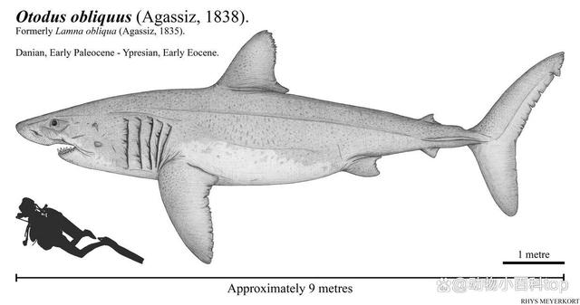 耳基拟噬人鲨,一种在已灭绝鲨鱼中实力出众的掠食者,统治了3900万至2500万年前的海洋,时期跨越了始新世晚期至渐新世早期。这种鲨鱼的体长通常在8米左右,极个别可达11米之巨。在那个时代的海洋环境中,耳基拟噬人鲨无疑是巨头,其悍勇堪比当时海洋中的巨大掠食者——龙王鲸。它们之间势均力敌,经常发生着激烈的食物链顶端的争夺。 然而,随着巨齿鲨的登场,这种势均力敌的平衡被打破。巨齿鲨以其超凡的体型和攻击能力,逐步占据了耳基拟噬人鲨的生态位。同时期,四贺噬抹香鲸这样的更加强悍的海洋生物的出现,进一步压缩了耳基拟噬人鲨的生存空间,导致了它们的最终灭绝。这说明即便是最为强悍的生物,也可能因环境和生态竞争的变迁而走向黯淡。 6、斜耳齿鲨 斜耳齿鲨在远古鲨鱼中以其名气颇高,特别是在白垩纪晚期,它开始成为海洋中的有力竞争者。虽然那时沧龙仍处于海洋的统治地位,斜耳齿鲨的崛起不容小觑,其长度约为10米左右。在其全盛时期,斜耳齿鲨的最大个体甚至能够达到12.2米长,体重大约在18到19吨之间。