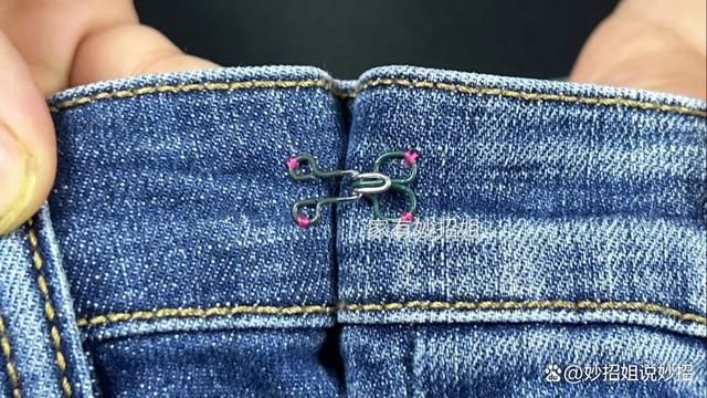 除了把它充当裤子的扣子外,要是遇到裤腰大的情况,我们也可以利用这个挂钩来缩小裤腰。方法很简单,只需要取一对挂钩,把它缝在裤腰的侧边,两个挂钩的距离,根据我们裤腰大了多少来决定。当挂钩缝好之后,我们将它们扣在一起,这样腰围瞬间就变小了,还不用担心会影响美观。