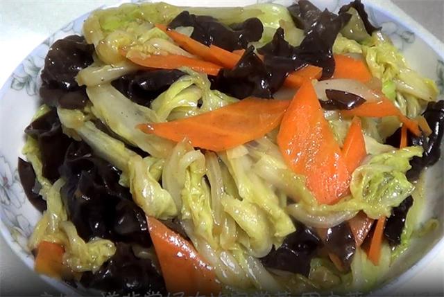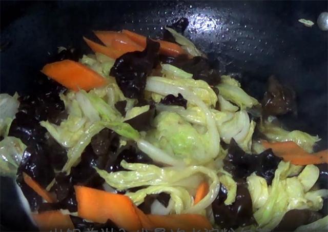 准备食材: 木耳、白菜、胡萝卜、葱花、食用油、十三香、盐、味精、酱油、水淀粉 具体做法: