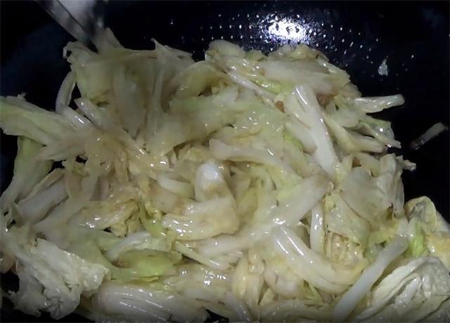 4.都切好之后,就可以热锅了,加适量的油,然后放入一小勺的十三香,然后把葱花下锅爆香,爆香之后,我们把白菜下锅,白菜要炒的久一点,因为你要把它都炒的变软。