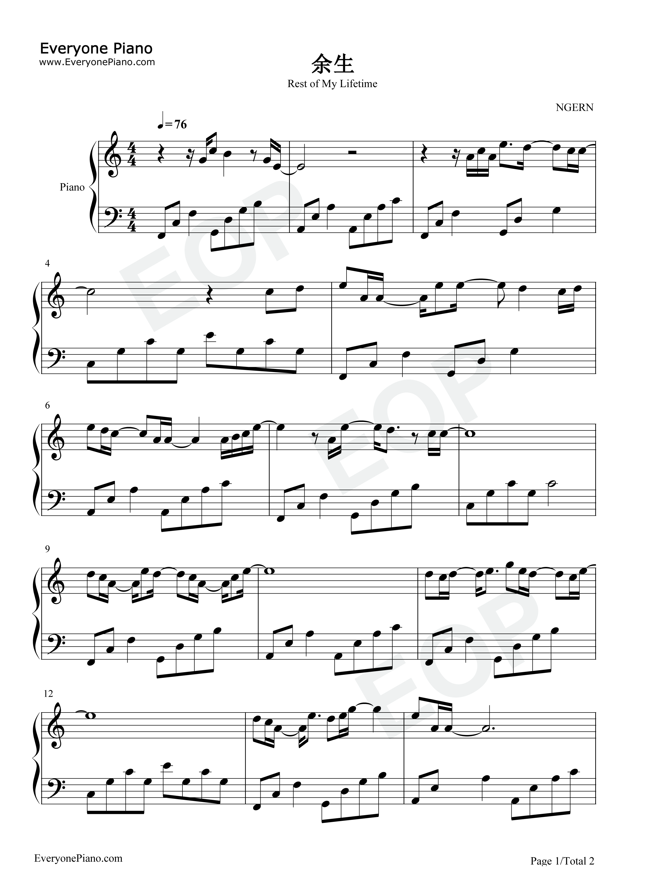 当前位置:首页>娱乐>余生钢琴谱-池约翰C.J
