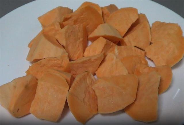 1.朋友们大家好,今天我们来做一道大人小孩都爱吃的拔丝地瓜,做法非常的简单,拔丝效果非常好,看一遍就可以学会。先买一根红瓤的地瓜,我们先把它洗净,洗净之后再去皮,去皮后我们把它切成滚刀块,地瓜的块可以切的大一些,这样更利于油炸。