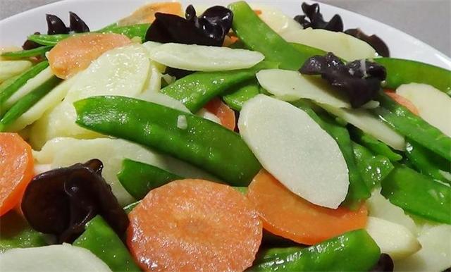 秋天,是丰收的季节,也是餐桌上色彩最为丰富的时刻。在这个金黄色的季节里,你是否想过为你的餐桌增添一抹清新的绿色?今天,我要给大家推荐一道非常适合秋天的素菜——荷塘小炒。这道菜不仅色泽诱人,简单易学,还能为你带来意想不到的惊喜! 荷塘小炒,顾名思义,其灵感来源于荷塘的美景。翠绿的荷兰豆、鲜嫩的莲藕、洁白的木耳以及鲜红的胡萝卜,这些食材组合在一起,仿佛一幅美丽的画卷。将这些食材快速翻炒,保留了它们的鲜嫩和清脆,每一口都是对秋天的最佳诠释。这道菜的口感丰富,荷兰豆的爽脆、莲藕的清脆、木耳的滑嫩,以及胡萝卜的甜美,相互交织,让人回味无穷。