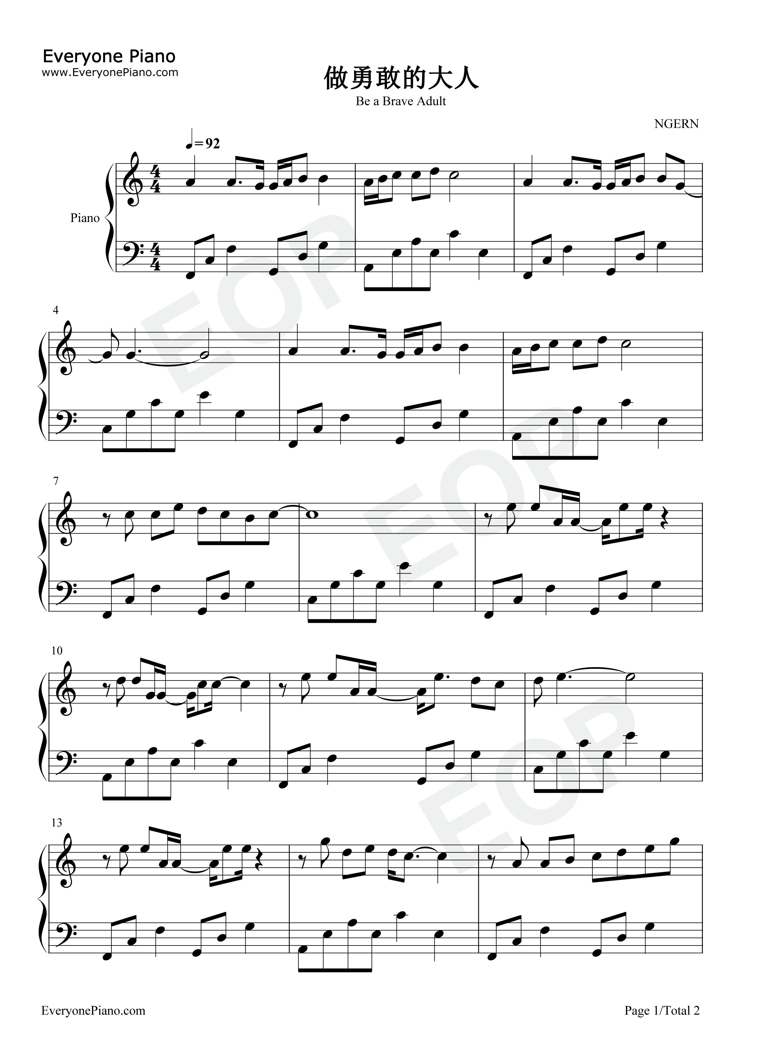 《做勇敢的大人》属于网易云音乐•打卡毕业季系列特别企划,是由云上工作室出品,唱作人李润祺演唱的毕业主题曲。收录于同名专辑《做勇敢的大人》,发行于2021年6月6日。 青春年华匆匆流逝,转眼间又是一批稚嫩的青年迈向社会。这个夏天永远会成为你人生字典里充满笑与泪的夏天,一起感受这份美好而又充满悸动的温度,一起奔向成为勇敢的大人的旅途吧! 做勇敢的大人双手简谱是网友提供的,由网友制作,感谢NGERN对EOP的支持! 做勇敢的大人歌词: 已经将离别消化 藏好旧的信札 十字路口等风应答 行李箱里没鲜花 新世界也太大 这旅程我要去哪 被没收掉暑假 盛夏只是盛夏 乐园逾期便无法留下 亏欠谁的承诺 变成笑话 爱太难还没读懂它 别害怕 快去往璀璨年华 捧到诗篇和盔甲 少年转身挥手出发 肩上有日光倾洒 去疯去喧哗 摘星建高塔 做勇敢的大人吧 浪漫尽情涂鸦 旧理想别倾塌 这样成长就算是伟大 岁月吝啬不给 温柔回答 那就靠自己找到它 别害怕 快去往璀璨年华 捧到诗篇和盔甲 少年转身挥手出发 肩上有日光倾洒 去疯去喧哗 摘星建高塔 做勇敢的大人吧 别害怕 快去往璀璨年华 捧到诗篇和盔甲 少年转身挥手出发 肩上有日光倾洒 去疯去喧哗 摘星建高塔 做勇敢的大人吧 去疯去喧哗 摘星建高塔 做勇敢的大人吧 |