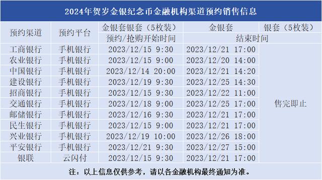 根据公告,2024年贺岁纪念币和纪念钞,已经于2023年12月15日起正式发行了! 这套金银币、铜合金纪念币和纪念钞各一枚的贺岁币钞,受到了藏友的广泛关注。 目前,它们已经陆续开始预约了,新的安排也已经全部公布。 更为关键的是,其中部分币钞,表现极为火爆。 那么,它们最新的预约安排是怎么样的,具体又能值多少,我们一起来看看。 贺岁币钞的预约安排我们先来看一下发行信息。 贺岁币钞包括金银币一套,我们俗称福字币。 纪念币一枚,我们俗称龙币或者二龙币。纪念钞一张,我们俗称龙钞或贺岁龙钞。 其中福字币发行量比较大,金币和金银套币是抽签预约,银币是顺序销售。摘自: www.ws46.com 目前,金币云商已经率先开启预约,具体信息如下。 与此同时,各行的预约信息也已经发布。百科网进行了简单的整理。 需要注意的是,预约规则基本与金币云商相同,银币是不用预约的。 此外,在本次的福字币中,最新引入了盲盒的概念,每一枚银币会带有金木水火土之一的小龙人摆件。 在福字币预约结束后,紧接着要开展的,就是龙币和龙钞的预约了。 它们的安排,也已经公布了。 1月3日起,龙币和龙钞就会开启分批预约,每人每种都能预约20枚。等到1月4日,还有线下预约。 注意,龙币是1.2亿枚,龙钞是1亿张,它们是分批预约,但同时兑换。 各地的预约入口,也有所变化。 有变化的入口,百科网已经在表格里标红了,大家一定要注意。 同时,我们还要留意的是,在兑换期结束后,很可能还有紧随而至的余量预约。从时间安排来看,在春节前还来得及。 那么,这些正在预约,或即将预约的贺岁币钞,有什么样的表现呢?它们又是否值得预约,一起来看看。 贺岁币钞表现如何我们还是按照发行顺序,依次和大家进行分享。 首先是正在预约的福字币。 发行前被广泛看好的3元菱形银币,由于是直接顺序销售,表现平平,想要入手也十分轻松,不仅各大入口量大管饱,各种特许和币商处,也是数量不缺。 而要抽签预约的金银套币,也挺一般。 从目前的情形来看,它们预计是容易破发的。藏友们看自己的喜好去决定是否预约吧。 而龙币和龙钞就不一样了,它们虽然还没开约,但已经有币商求购,并远超面值了。 其中龙币在回收的要略少一些,龙钞就更加火爆了。 可以看到,表现也比龙币好不少。 目前,仅发行一亿张的龙钞,作为系列龙头,业内基本都是看好的。 因此,龙钞的预约,是最不容错过的!如果预约上有新的变动,百科网也会及时提醒大家的。 |