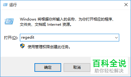 2. 在运行窗口输入:regedit ,确定或enter,进入注册表编辑器;