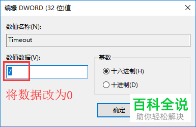 4. 如图进入编辑 DWORD (32 位)值窗口,数值数据设置为0,最后确定重启电脑即可;