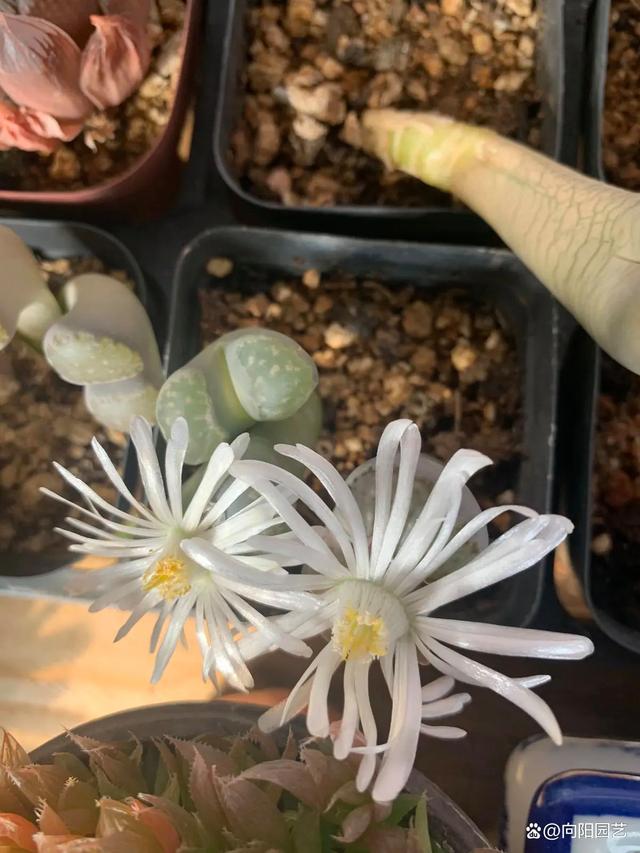 生石花最有趣的地方就在于繁殖,花瓣授粉的过程中,不同品种的生石花相互进行授粉,所孕育出来的后代是不一样的,并且一个种荚就可以繁殖出很多的幼苗,喜欢养只生石花的朋友,秋季就可以进行大量的授粉繁殖,明年春天种荚完全成熟,准备好花盆花土,将种子进行上盆播种。